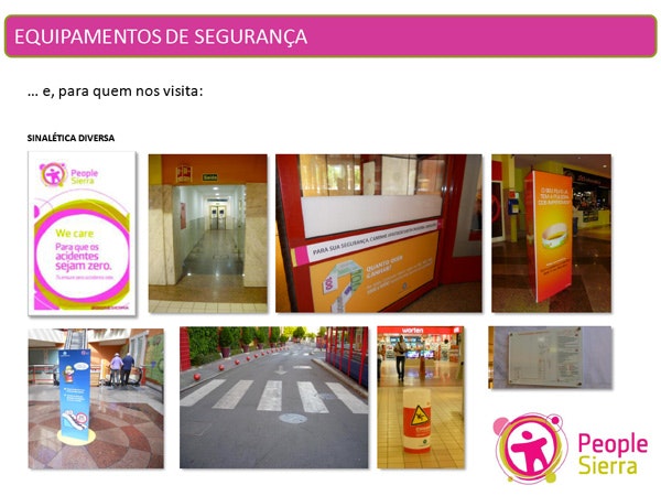 - Mensagem “We Care para que os acidentes sejam zero”, a alertar para os perigos e regras de segurança na utilização dos equipamentos do centro.