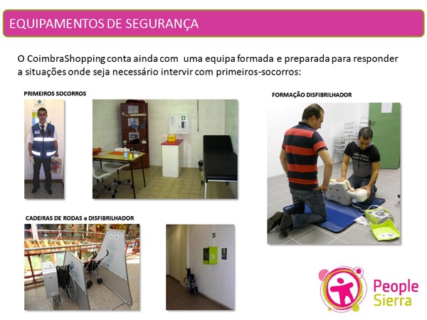Para garantir que a Segurança e Saúde têm um desempenho sólido, a Sonae Sierra optou por implementar um sistema de gestão de Segurança e Saúde de acordo com os requisitos da norma internacional OHSAS 18001. Assim, no CoimbraShopping, Mário Madeira, como Diretor do Centro e principal responsável pela Segurança e Saúde e toda a equipe de gestão do centro comprometem-se a desenvolver e a implementar uma Política, objectivos e planos de Segurança e Saúde, tendo em consideração a legislação e regras existentes, a avaliação de riscos e envolvendo todas as pessoas que visitam ou trabalham no Centro.